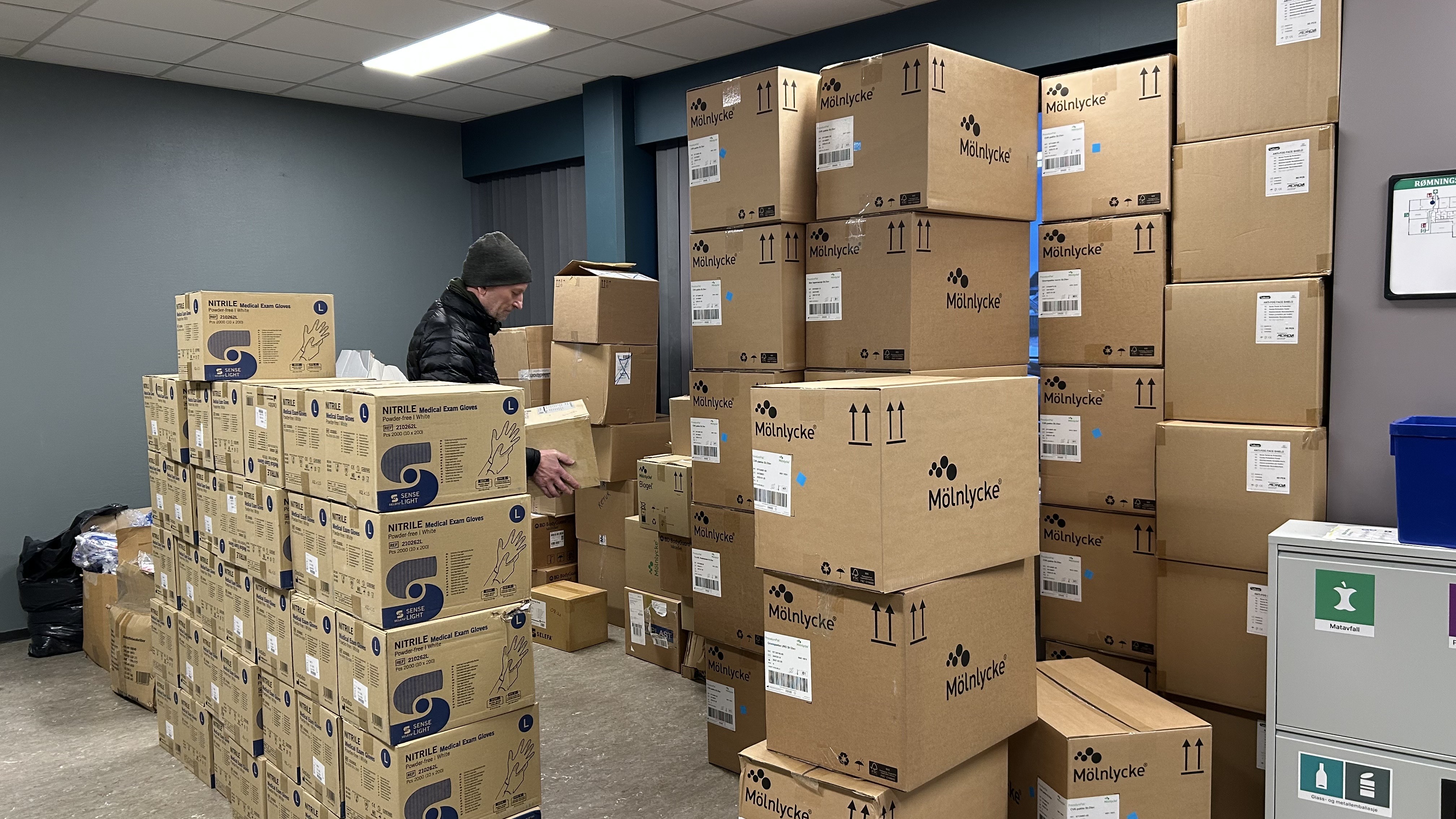 Hansker, bandasjer, sårbehandling, hygiene – etter behovslister fra sykehus og feltklinikker.